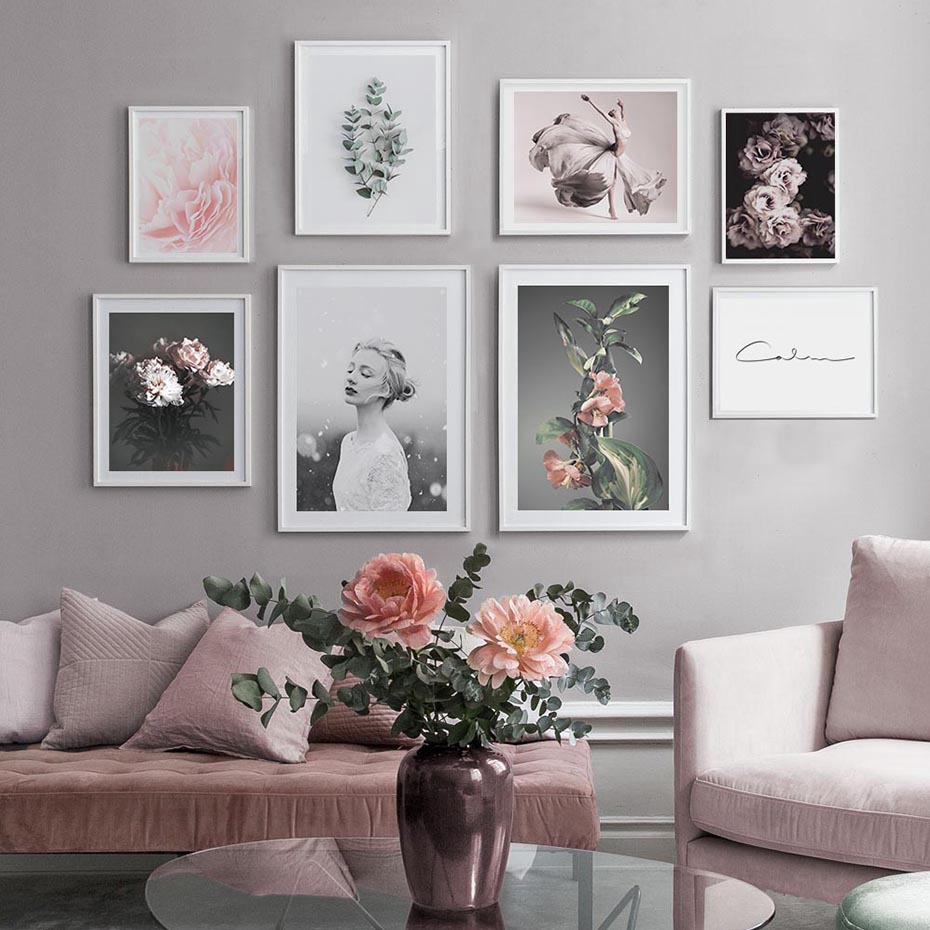 Modern Pink Floral Girl Quiet Wall Art Picture Canvas Painting